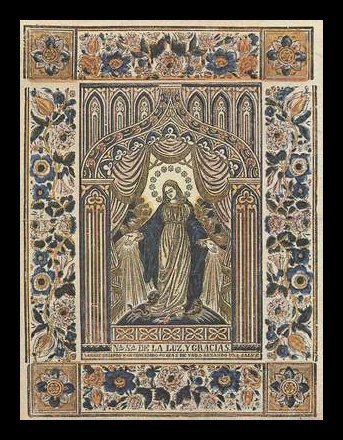 Cheap Wood cutter from the Druckerrei Estivill from Barcelona (Mercy image of Our Lady of light and the grace) Gold Wood-Mounted Art Poster Print - 11" X 17" Review