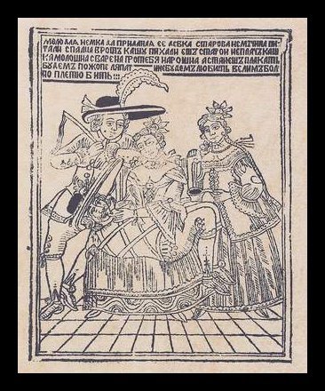 Russian timber cutters of the 18th Century (Childish old man has become, by a young woman is supplied) Gold Wood-Mounted Art Poster Print - 13" X 19" Feature