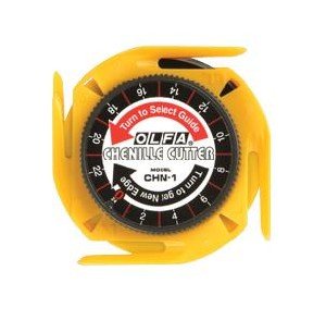 OLFA-Chenille Cutter has 4 channel guide sizes from narrow to wide widths. Turn dial for 24 new blade edges. Long lasting ultra sharp double honed edge blade made from high quality tungsten tool steel. Cuts paper card stock photos felt fleece and more! Use with Chenille brush to achieve soft chenille like finish (sold separately). Simple-to-use multi-purpose chenille cutter not only helps you easily make your own fabric but can also cut multiple layers of fabric. Keep out of reach of children. Guide sizes include: 1/8 1/4 3/8 and 1/2. Cutter size is approximately: 2.5 x 2.5. Made in Japan.