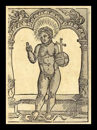 Wood cutter from Stockholm to 1574 (Jesus, a snake crushed) Black Wood-Mounted Art Poster Print - 13" X 19" Feature