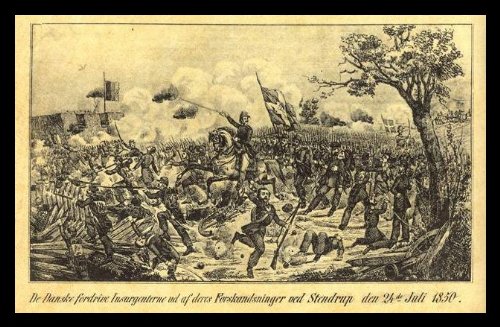 Copenhagen timber cutters in 1850 (The Danes distribute the insurgents in Stendrup) White Wood-Mounted Art Poster Print - 13" X 19" Feature